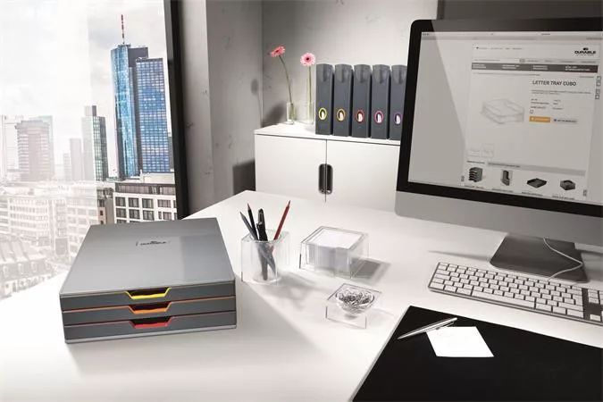 Tegye könnyebbé a dokumentumok rendszerezését: íróasztal kiegészítők modern VARICOLOR® dizájnban. A selymes színű kontúrok megkönnyítik a dokumentumokban történő eligazodást.