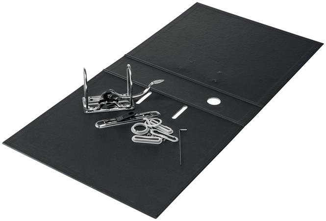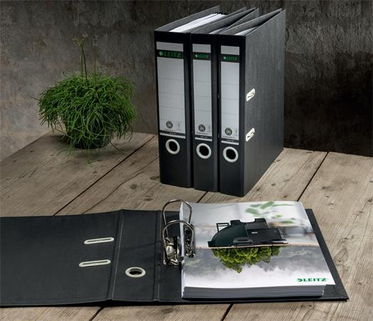 Attraktív, prémium minőségű, újrahasznosított anyagokból készült emelőkaros iratrendező, amely a teljes újrahasznosítás érdekében szétszerelhető. -100%-ban újrahasznosított kartonból, 100%-ban újrahasznosítható, Blue Angel és FSC tanúsítványokkal rendelkező termék -szabadalommal védett 180°-os emelőkaros szerkezet, mely 50%-kal szélesebbre nyílik és akár 20%-kal gyorsabb rendszerezést eredményez -erős, papír borítású iratrendező stílusos, fekete színben -világosszürke, újrahasznosított műanyag kihúzólyuk a könnyű használat, és rado gyűrűk - a stabilitás érdekében -350 A4 lap (80 g-os) kapacitás -5 év garancia a szerkezetre -Európában gyártott termék