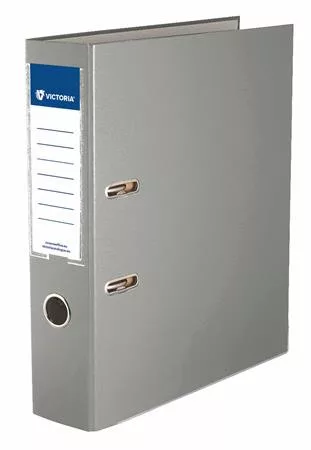 Iratrendező, 75 mm, A4, PP/karton, élvédő sínnel, VICTORIA OFFICE, "Basic", szürke