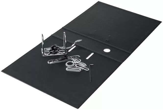 Attraktív, prémium minőségű, újrahasznosított anyagokból készült emelőkaros iratrendező, amely a teljes újrahasznosítás érdekében szétszerelhető -100%-ban újrahasznosított kartonból -100%-ban újrahasznosítható, Blue Angel és FSC tanúsítványokkal rendelkező termék -szabadalommal védett 180°-os emelőkaros szerkezet, mely 50%-kal szélesebbre nyílik és akár 20%-kal gyorsabb rendszerezést eredményez -erős, papír borítású iratrendező stílusos, fekete színben -világosszürke, újrahasznosított műanyag kihúzólyuk a könnyű használat, és rado gyűrűk - a stabilitás érdekében -600 A4 lap (80 g-os) kapacitás -5 év garancia a szerkezetre -Európában gyártott termék
