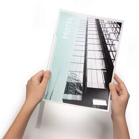 Iratsín, a dokumentumok lyukasztás nélküli lefűzésére, lekerekített sarkokkal, melyek megkönnyítik a papír behelyezését