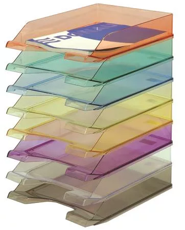 Gyakran használt A4 méretű iratok, katalógusok tárolására -tartós, ellenálló műanyag alapanyag -mind irodai, mind otthoni használatra kiváló -a tálcák kialakítása lehetővé teszi, hogy több tálca is stabilan egymásra helyezhető -címke felhelyezésére alkalmas kialakítás -külső méret: 254x60x346 mm