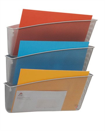 Irattartó, fali, fémhálós, 3 zsebes, ALBA, ezüst