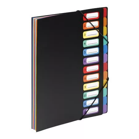 Irattartó mappa, gumis, 12 részes, VIQUEL "Rainbow Class", fekete