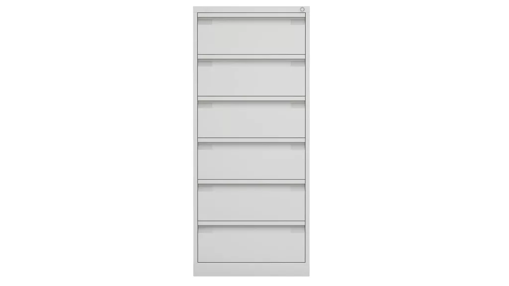 Irattartó szekrény, széxméxma 800x622x1321 mm, din a5, hárompályás, 6 fiókkal, fogantyúval, hófehér