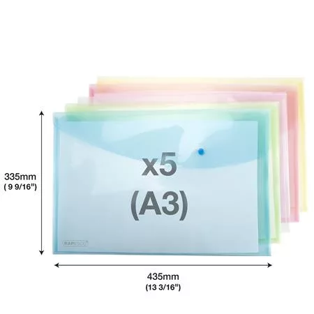 Irattartó tasak, A3, PP, patentos, RAPESCO, vegyes színek