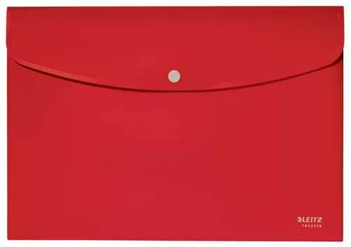 Irattartó tasak, A4, PP, patentos, LEITZ "Recycle", piros