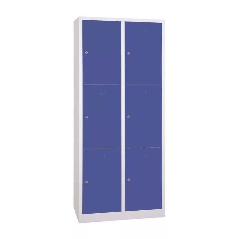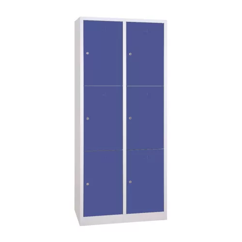 Iskolai fém öltözőszekrény, 6 rekeszes (2×3), 1900mmx800mmx450mm, Szürke/kék