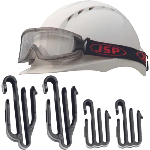 Pack of 4 Clips used to securely attach head lamps and goggles to an EVO2®, EVO3®, EVO6100® and EVOlite® Safety Helmets.