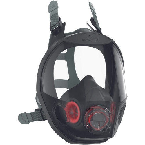»Többfunkciós teljesálarc, amely páratlan kényelmet biztosít hosszú távú viselés során is, és védelmet nyújt számos légzőszervi veszély ellen. Ergonomikus, kiegyensúlyozott súlyelosztású kivitel. Polikarbonát panorámás látómező párásodásgátló és karcálló bevonattal. A látómező B osztályú mechanikai védelmet biztosít. A Typhoon ™ innovatív kilégzőszelep segít csökkenteni hőt és a nedvességet. Az állítható 4 - pontos fejpánt garantálja a precíz, kényelmes illeszkedést. Bajonettes rendszer biztosítja a szűrők biztonságos rögzítését.