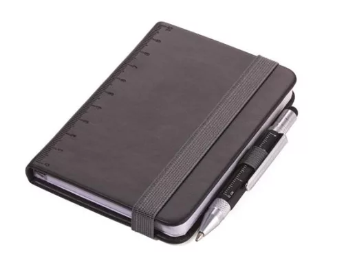 Jegyzetfüzet, exkluzív, A7, pontrácsos, 64 lap, keményfedeles, fekete golyóstollal, TROIKA "Lilipad+Liliput", fekete