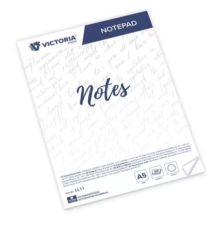 Jegyzettömb, A5, 5x50 lap, sima, VICTORIA OFFICE, fehér