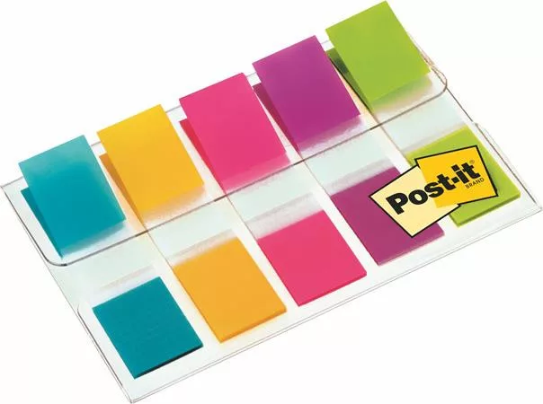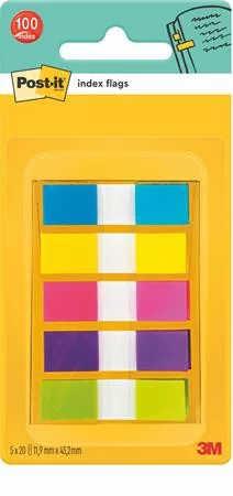 Jelölőcímke, műanyag, 5x20 lap, 12x43 mm, 3M POSTIT, vegyes
