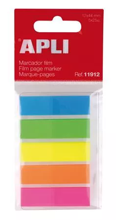 Jelölőcímke, műanyag, 5x25 lap, 12x45 mm, APLI, 5 szín