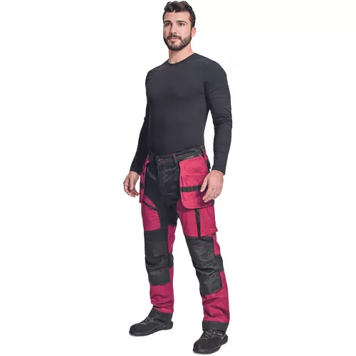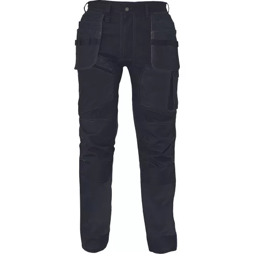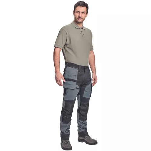 • férfi munkanadrág rugalmas derékkal • 2 oldalsó zseb, két szerszámtartó zsebbel elöl • D-gyűrű • 1 oldalsó zseb a lábon hajtókával • 1 oldalsó zseb cipzárral • 2 hátsó hajtókás zseb • megerősített térdrész, térdvédőtartó • 5 cm-rel meghosszabbítható nadrágszárak • a nadrág hátsó, alsó része megerősített • dekoratív varratok • 265 g/m2