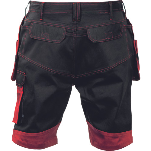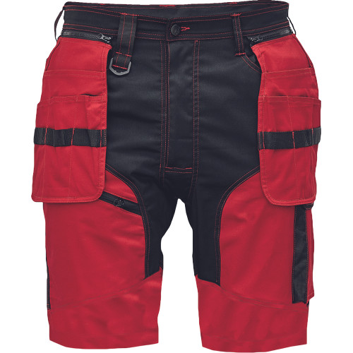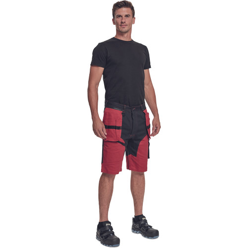 • férfi munkanadrág rugalmas derékkal • elöl 2 szerszámzsebbel, 1 cipzáras oldalzsebbel, 1 zsebfedős oldalzsebbel a szárakon, 2 zsebfedős hátsó zsebbel, D-gyűrűvel • dekoratív varratok