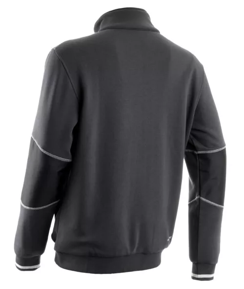 * sötétszürke, 300 g/m2 vastag alapanyag: 70% pamut és 30% poliészter, Oxford 300D alapanyagú megerősítés* 95% poliészter és 5% elasztán alapanyagú rugalmas, bordázott textil mandzsetta és aljrész* az álló gallér tetejéig futó cipzár nyak- és állvédővel, Oxford alapanyagú megerősítés a könyöknél2 függőleges nyílású cipzáras oldalzseb Oxford megerősítéssel, 2 belső oldalzseb