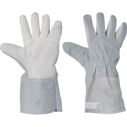 • marhabőr rezgéscsökkentő védőkesztyű • színbőr tenyér, hasított bőr kézfej • pamut és rezgéselnyelő tenyérbélés, egyenes mandzsetta