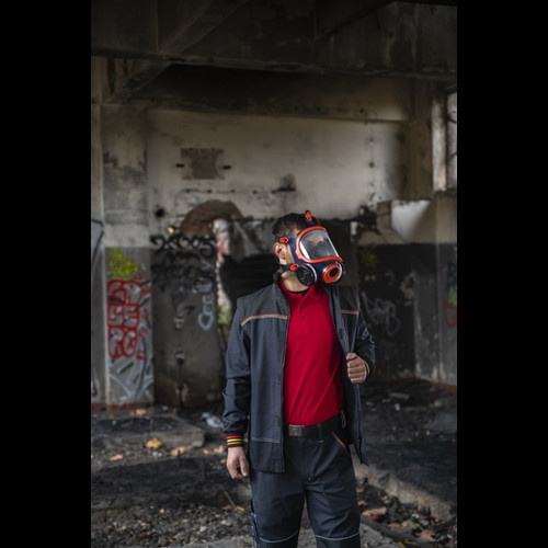 • férfi munkakabát állógallérral, modern mintázattal • 2 nagy oldalzseb, 1 multifunkcionális mellzseb • D-gyűrű, megerősítő rátét a vállakon Oxford 600D anyagból