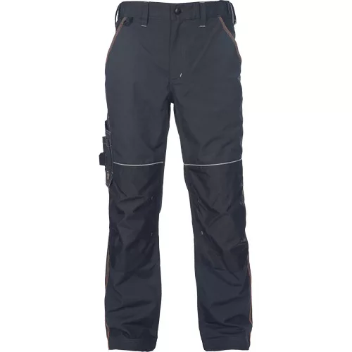 • férfi nadrág alacsonyabban szabott, rugalmas derékkal és multifunkcionális zsebekkel • 2 oldalzseb • multifunkcionális zseb az oldalán • 2 hátsó zseb • kalapácstartó • D- gyűrű • megerősített térdrész és térdzseb Oxford 600D anyagból térdvédő behelyezéséhez • tartós tripla varratok a szárakon és az üleprészen • 5 cm-rel leengedhető szárak • fényvisszavető díszítés • dekoratív  és kontrasztos, jól látható varratok