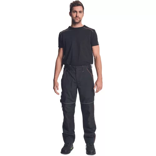 • férfi nadrág alacsonyabban szabott, rugalmas derékkal és multifunkcionális zsebekkel • 2 oldalzseb • multifunkcionális zseb az oldalán • 2 hátsó zseb • kalapácstartó • D- gyűrű • megerősített térdrész és térdzseb Oxford 600D anyagból térdvédő behelyezéséhez • tartós tripla varratok a szárakon és az üleprészen • 5 cm-rel leengedhető szárak • fényvisszavető díszítés • dekoratív  és kontrasztos, jól látható varratok