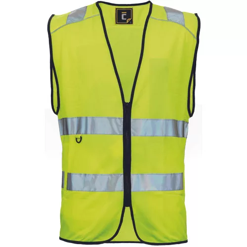 • jólláthatósági mellény 2 fényvisszavető csíkkal a test körül és a vállakon • cipzáras záródás • két oldalzseb