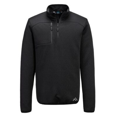 A KX3 Sport Textuált 1/4 cipzáras pulóver egy új, innovatív kötött anyag, amely bolyhosodás mentes. Mellzseb a tároláshoz és rugalmas mandzsetta és szegély a nagyszerű illeszkedés érdekében. Ez a meleg viselet tökéletesen alkalmas réteges öltözködésre.
