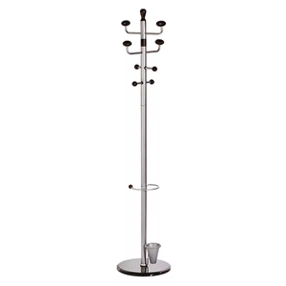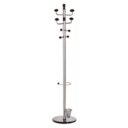 Kabáttartó, átmérő x magasság 375 x 1720 mm, 8 kabátakasztó, esernyőtartó, fémből, márvány talppal, ezüst
