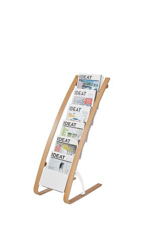 Skandináv stílus, letisztult dizájn fa és acél anyagok kombinációjával. Ideális kiegészítő magazinok vagy prospektusok kihelyezéséhez például a recepción.