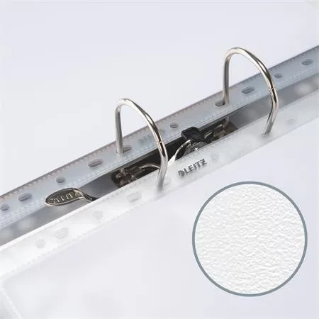 A nagy kapacitású lefűzhető tasakok ideálisak terjedelmesebb dokumentumokhoz és katalógusokhoz otthoni, irodai vagy iskolai környezetben. Kényelmes dokumentumtárolást biztosít, felül és jobb oldalon nyitott, így a tartalma könnyen hozzáférhető. Erős, fém, univerzális, 6 lyukú lefűzőrésszel rendelkezik, amely még a nehéz dokumentumokat is a helyén tartja. Akár 200 A4-es papírlap tárolásához is alkalmas, és kiváló minőségének köszönhetően többször újra felhasználható. A savmentes anyag biztosítja a dokumentumok védelmét, az átlátszó, tükröződésmentes kivitel - a tartalom könnyű olvashatóságát. PVC (polivinil-klorid) műanyagból készül, 48%-ban UL által auditált és tanúsított újrahasznosítottanyag-tartalommal.
