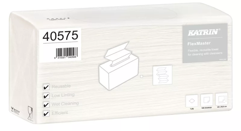 Katrin FlexMaster szöszmentes ipari törlő, hajtogatott, 1 rétegű, fehér, 100 lapos, 5 csomag/karton