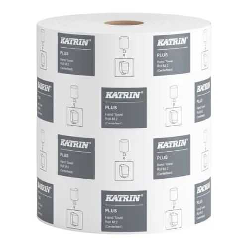Katrin Plus M/100 tekercses kéztörlő, 20cm, 2 rétegű, hófehér, 400 lapos, 100 méter/tekercs, 100% cellulóz, 6 tekercs/zsák
