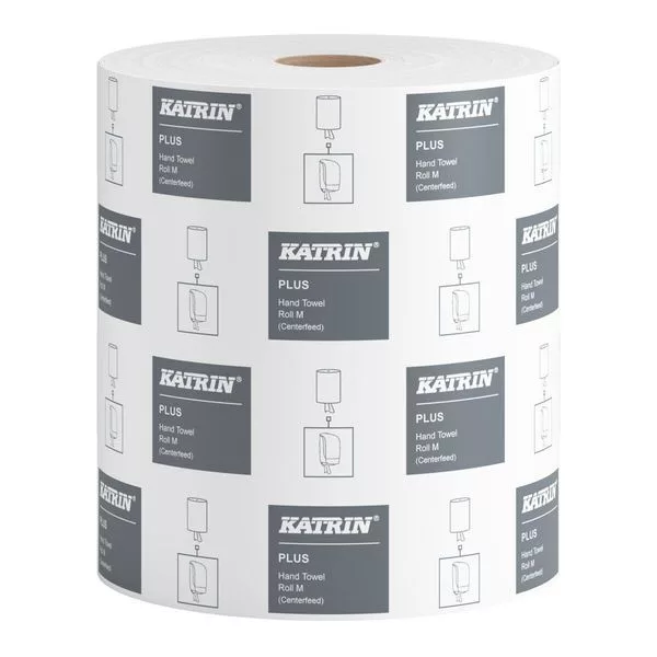 Katrin Plus Medium 300M tekercses kéztörlő, 300 méter, 1 rétegű, hófehér, 6 tekercs/zsák, KIFUTÓ!