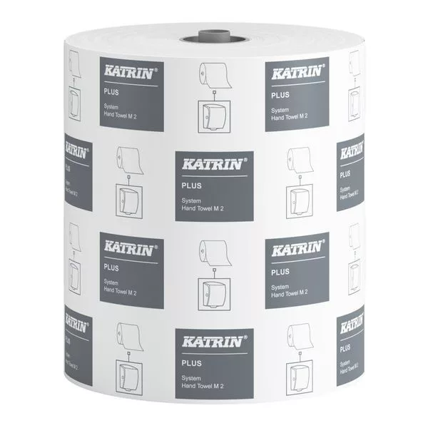 Katrin Plus System M2 tekercses kéztörlő, 19 cm, 2 rétegű, hófehér, 667 lapos, 150 méter/tekercs, 100% cellulóz, 6 tekercs/karton