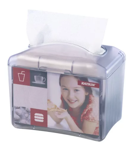 Katrin szalvétaadagoló egydarabos szalvétaadagolással! Nagyon higiénikus. A könnyű kezelést segítő bepattintós rendszernek köszönhetően egyszerűen tölthető fel. Látható a töltöttségi szintje. Egymásra helyezhető. Az egydarabos adagoló tulajdonság csökkenti a fogyasztást és az utántöltési szükségletet. Könnyen tisztítható.