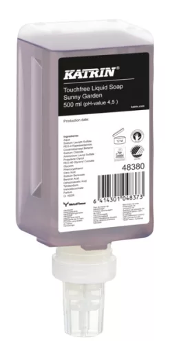Katrin Touchfree folyékony szappan ''Sunny Garden Touchfree Liquid Soap'', érintésmentes szenzoros adagolóba, 500 ml, 12 db/karton, KIFUTÓ!