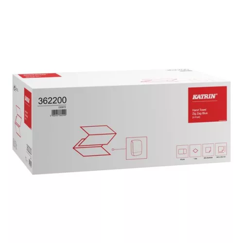 Katrin Zig Zag Blue hajtogatott kéztörlő (V-hajtott), 1 rétegű, kék, 23,2x22,9 cm, 250 lapos, 20 csomag/karton
