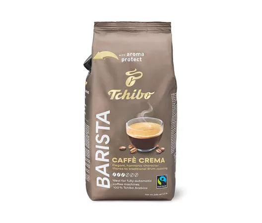 A Tchibo Barista Caffé Crema lágy, gyümölcsös jellegű, elegáns aromájú, kissé bogyós gyümölcsökre emlékeztető ízjegyekkel rendelkezik. Hagyományos dob pörköléssel pörkölt prémium kávé, a hagyományos eszpresszó pörköléshez képest kétszer hosszabban, de kíméletesen pörkölve, így az ízek és aromák maximálisan ki tudnak teljesedni. Az így nyert aromát és ízeket egyedi visszazárható aromavédő zárral láttuk el, hogy otthonában minél hosszabban élvezhesse frissességét.