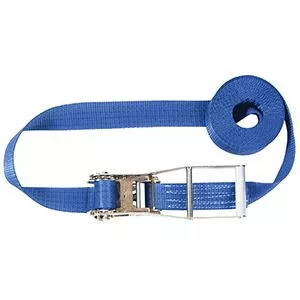 Kétrészes rögzítőpánt, hosszú karos nyomóracsni + keretkampó, 4000 dan szakítóerő. id umr., gurtbr. 50 mm, h 4 m, kék színű, 4 csík, 2 db-os csomag