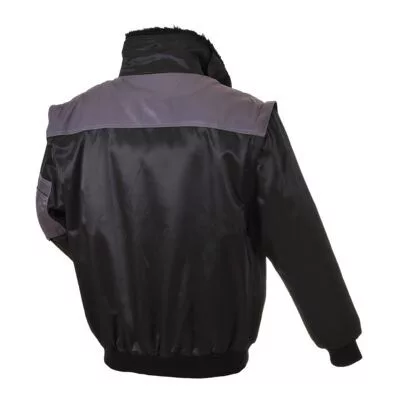 Stílusos és praktikus, kéttónusú pilótakabát. Sokoldalú megoldás, levehető ujjakkal és gallérral, kivehető szőrmebéléssel készül. Négyévszakos modell, vízlepergető bevonattal.