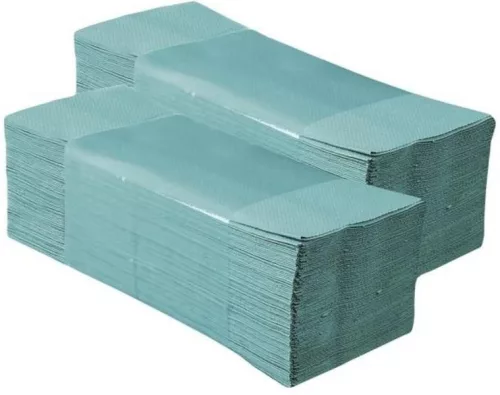 Kéztörlő V hajtogatott, zöld, 1 rétegű, 250 lapos, 25x23cm, 100% újrahasznosított, 20 csomag/karton