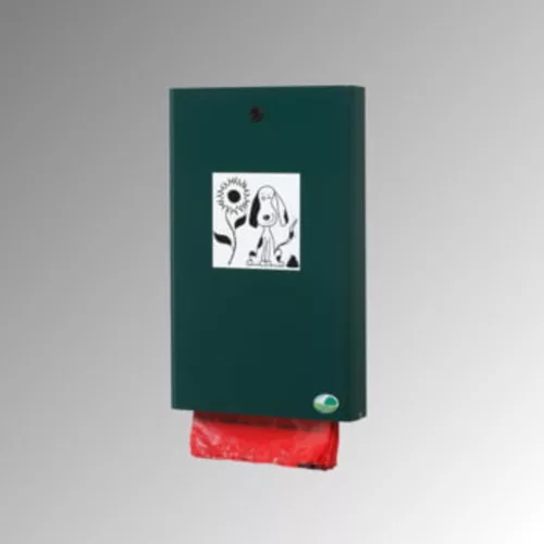 Kutyaürülék-zsák adagoló 200 zsákhoz, szé x mé x ma 265x60x430 mm, horganyzott és ral 6005 színűre festett, zárható