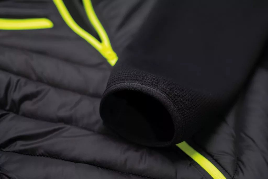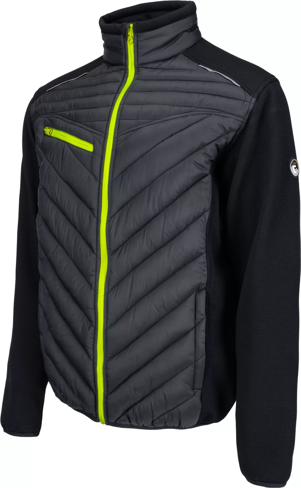 • dzseki steppelt anyag és kötött ujjak kombinációjával • jól láthatósági színkiemelés és fényvisszavető részletek • 2 oldalzseb • cipzáras mellzseb