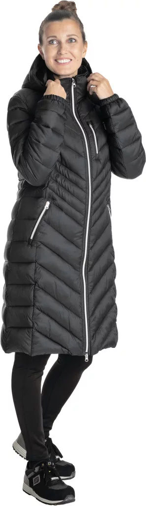 • women's leisure insulated coat with detachable hood • zip closure • 2 side zip pockets • 1 chest zip pocket • back vent with press studs • elastic sleeve cuffs