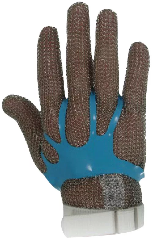 • ötujjas, fémgyűrűs védőkesztyű korrózióálló zárt acélgyűrűkből* védelmet biztosít a húsiparban alkalmazott kézi kések szúró, vágó mechanikai hatása ellen* 100 N húzószilárdság, ötös szövés* csattal állítható csuklóméret, méretnagyságot jelölő színek* a kézre való jobb illeszkedést segítendő választható * kesztyű feszítő gumi (GAN44900)* EN 14328:2005/07, EN 1082-1:1997/03 szabványoknak fel meg