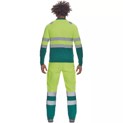 • Hi-Vis hosszú ujjú póló 5 cm széles fényvisszavető csíkokkal • 3 gombbal záródó nyakkivágás • rugalmas mandzsetta • kontrasztos színű gallér • 1 mellzseb