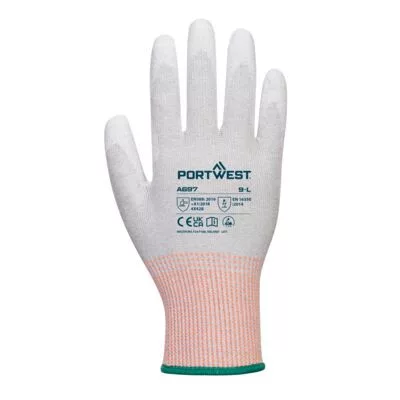 B szintű vágásbiztos kesztyű a vágások és éles tárgyak elleni védelemhez. 13g poliészter és szénszálas alapanyag, amely elvezeti a statikus elektromosságot. PU tenyérbevonat a kiváló fogásbiztonságért. Ideális autóiparban, elektronikai összeszerelésekhez, teszteléshez és precíziós munkákhoz. Alkalmas a legtöbb érintőképernyős eszközzel való használatra.