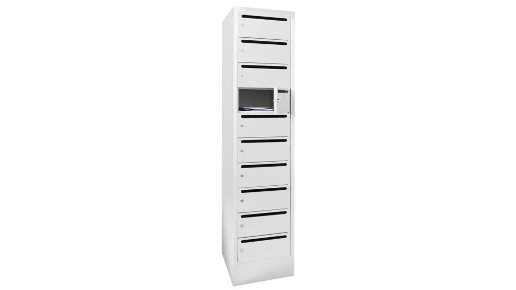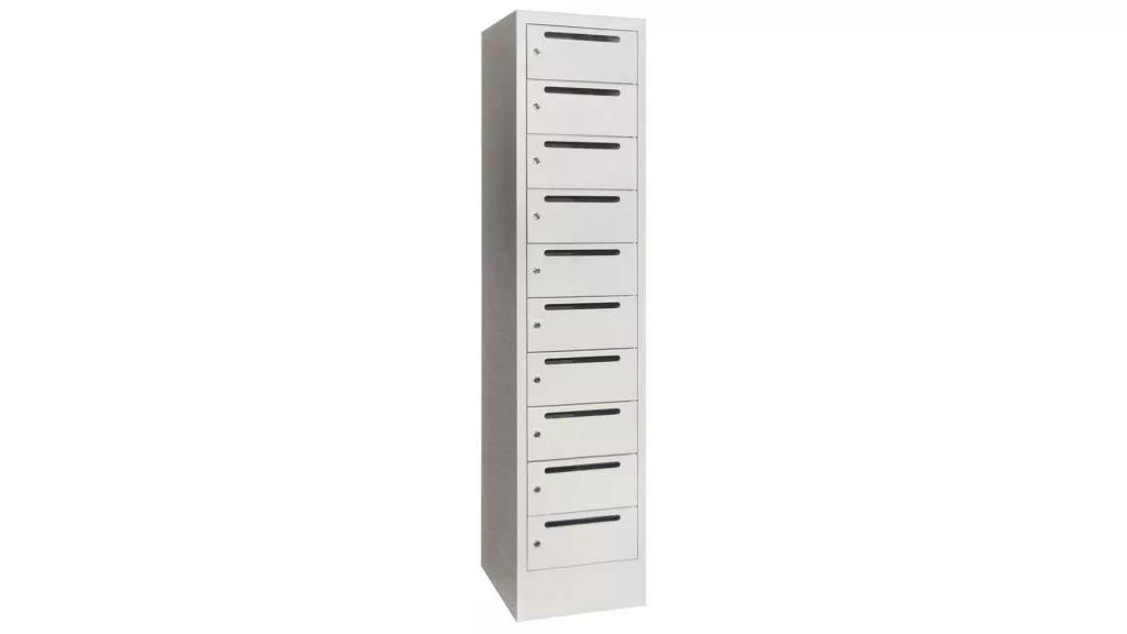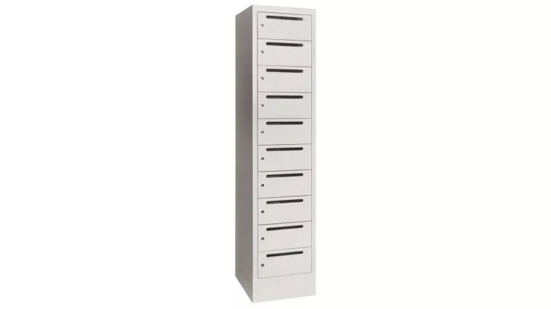 Levélelosztó szekrény, széxméxma 600x500x1850 mm, 2x10 rekesz, rekeszszélesség 300 mm, zár, alsó rész, ral 7035 világosszürke