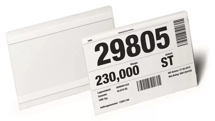 Logisztikai zseb átlátszó, merev fóliából, öntapadó csíkokkal. -felhasználási terület: polcok, műanyag tárolók, fa- és kartondobozok -átlátszó PET merev fóliából -szkennelhető, dokumentumbiztos -a betétlapok könnyedén cserélhetők a döntött előlapnak köszönhetően -rögzítés: öntapadó csíkokkal -anyag: műanyag -tájolás: fekvő -külső méretek: 213 x 153 mm (szé x ma) -belső méretek: 210 x 148 mm (szé x ma) Itt megtekinthető és letölthető a termékadatlap. Itt megtekinthető és letölthető a környezetvédelmi adatlap. Gyártó/első EU forgalmazó elérhetősége:  DURABLE Hunke & Jochheim GmbH & Co. KG Westfalenstrasse 77-79, D- 58636 Iserlohn, Germany info@durable.de www.durable.de
