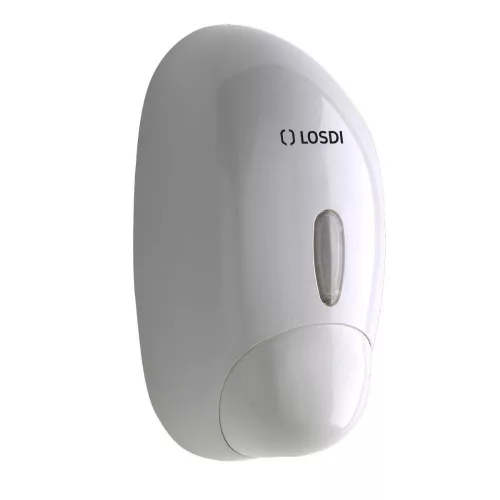 LOSDI cseppformájú folyékony szappan adagoló. Stílusos fehér megjelenés. Strapabíró kialakítás a komolyabb igényvételhez. 900 ml-es utántölthető, kivehető tartállyal. Kulccsal zárható ABS műanyag ház.